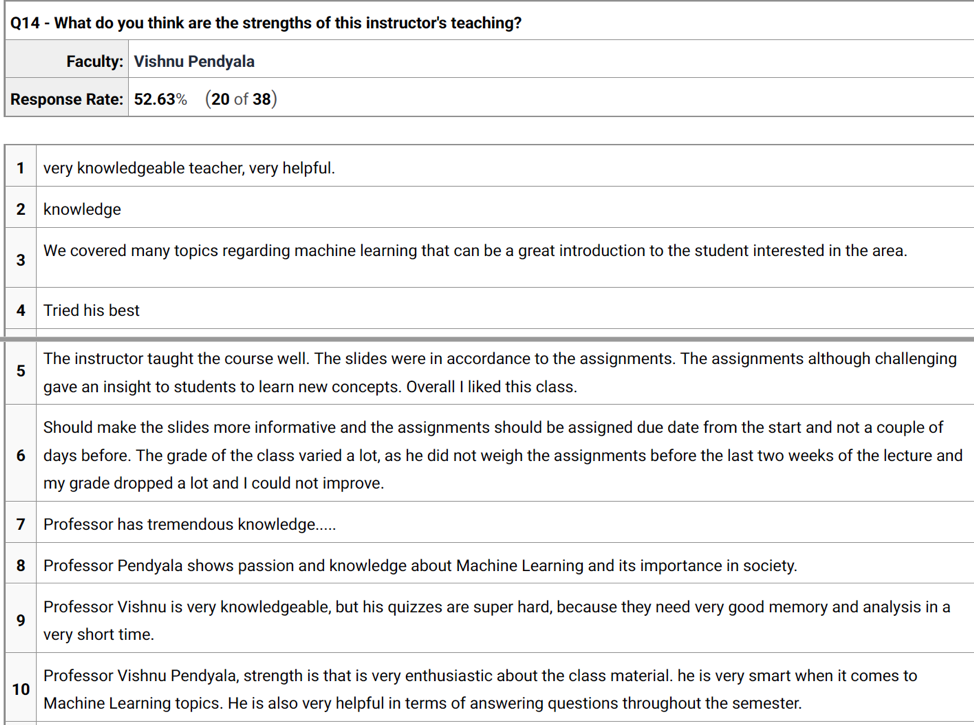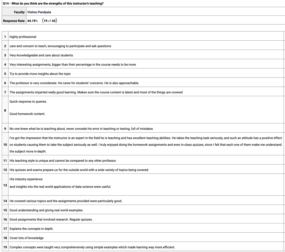 Student (Anonymous) Opinion of Teaching Effectiveness and Wisdom Walls